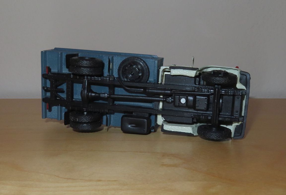MAZ-53371 truck Scale: 1:43, metal/plastic diecast Tilting cab and opening tailgate OK overall, a few cracks in the cab; original box |