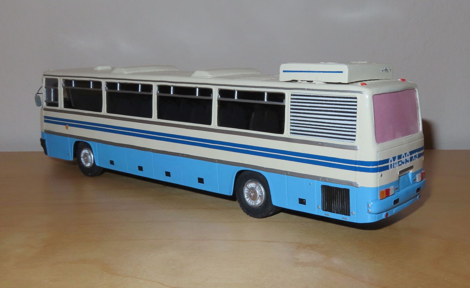 LAZ-699R tour bus Scale: 1:43, white metal handmade and hand-painted Many scratchbuilt parts OK condition, 1 paint crack in left rear corner |