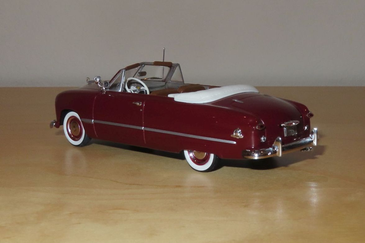 1949 Ford Custom V8 Convertible in Maroon Ford Motor Company 100 Years series Scale: 1:43, metal diecast Model is mint in box |